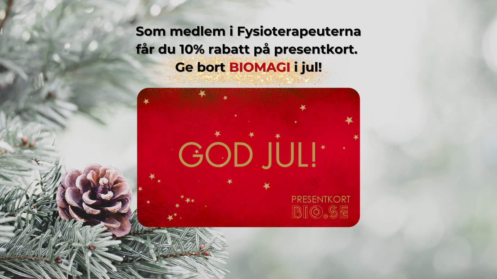 Julen är här – och vad passar bättre än att ge bort bioupplevelser? Medlemmar i Fysioterapeuterna får 10% rabatt på presentkort med valfritt värde hos Bio.se.