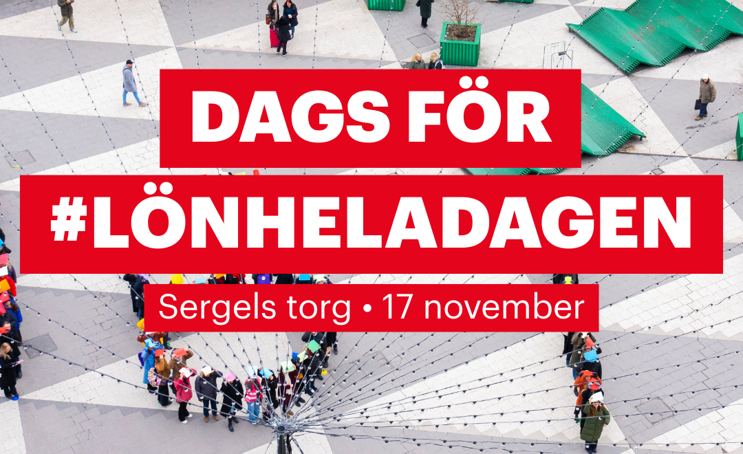 Idag den 17 november, kl. 11.15, anordnar Lön hela dagen en manifestation för jämställda löner på Sergels torg i Stockholm där vi skapar den traditionsenliga bilden av klockslaget i form av en mänsklig konstellation. Därefter följer brandtal av företrädare från Lön hela dagen-nätverket. Media är välkomna att bevaka manifestationen.